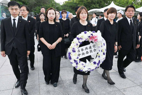 日本共産党の田村智子委員長らは被爆80年を迎える6日早朝、広島市の平和記念公園で原爆碑に献花し、犠牲者を追悼しました。 献花には田村氏と、山添拓政策委員長、本村伸子、堀川あきこ両衆院議員、吉良よし子、仁比聡平、白川容子の各参院議員、井上哲士前参院議員、大平喜信元衆院議員、村上昭二広島県委員長、藤井敏子、河村晃子両広島県議、中原洋美、中森辰一、大西理、中村孝江、清水貞子、藤本聡志の各広島市議らが参加しました。