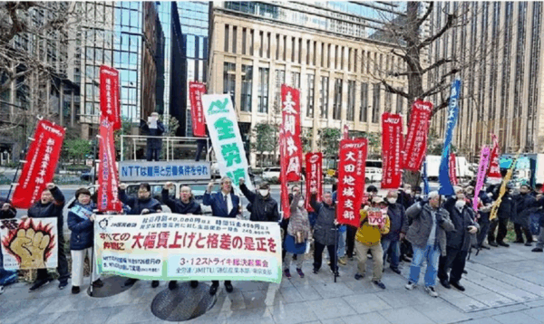 NTTは毎年「大幅賃上げ」をアピールしながら、実態は基本賃金700円増という超低額回答を続けていましたが、JMITU(日本金属製造情報通信労働組合)通信産業本部の闘いで職場世論を広げ、今年の回答は2000円への上積みを実現しました。(田代正則)